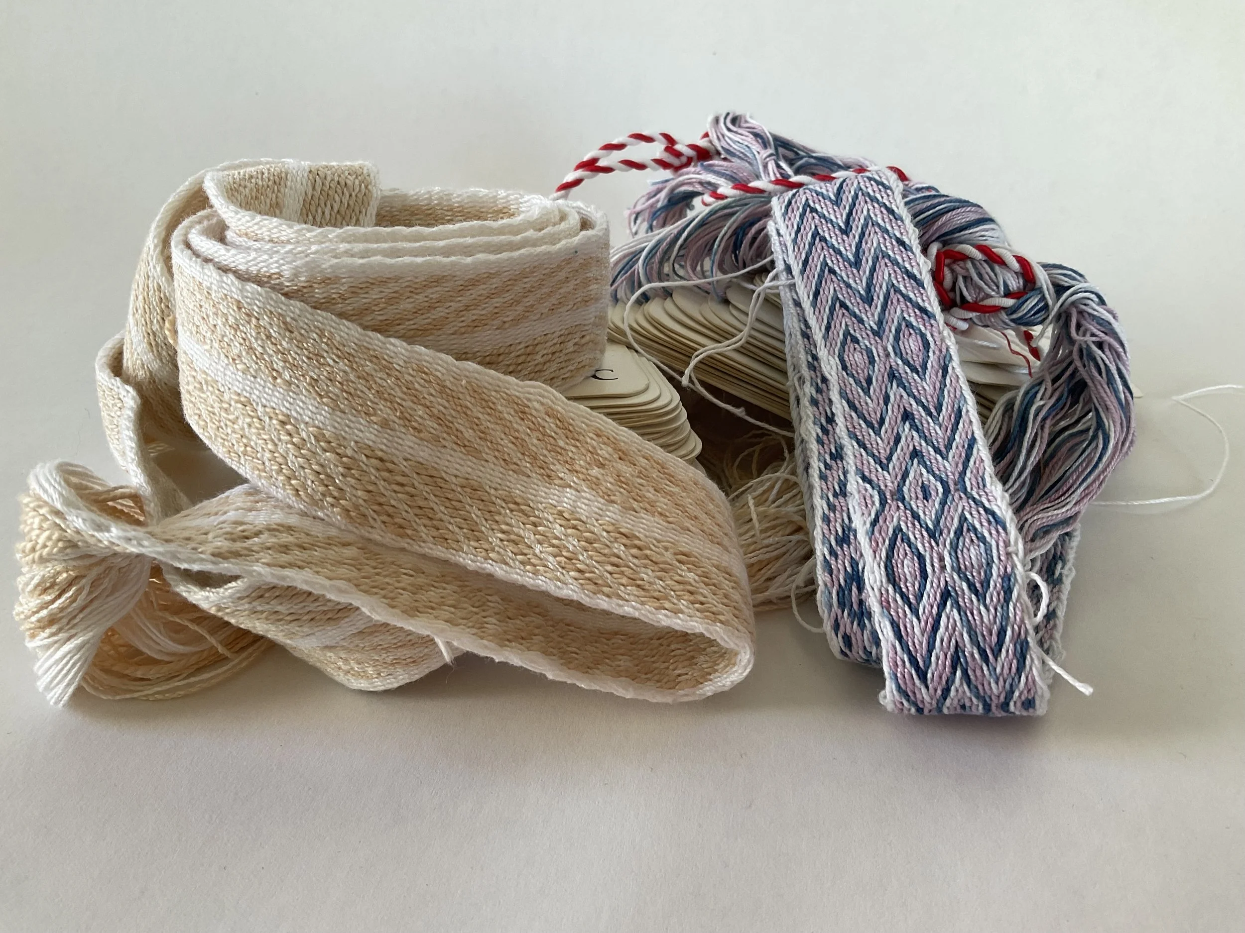 Tablet weaving, yarn dyed with earth, pigment, stains and indigo
